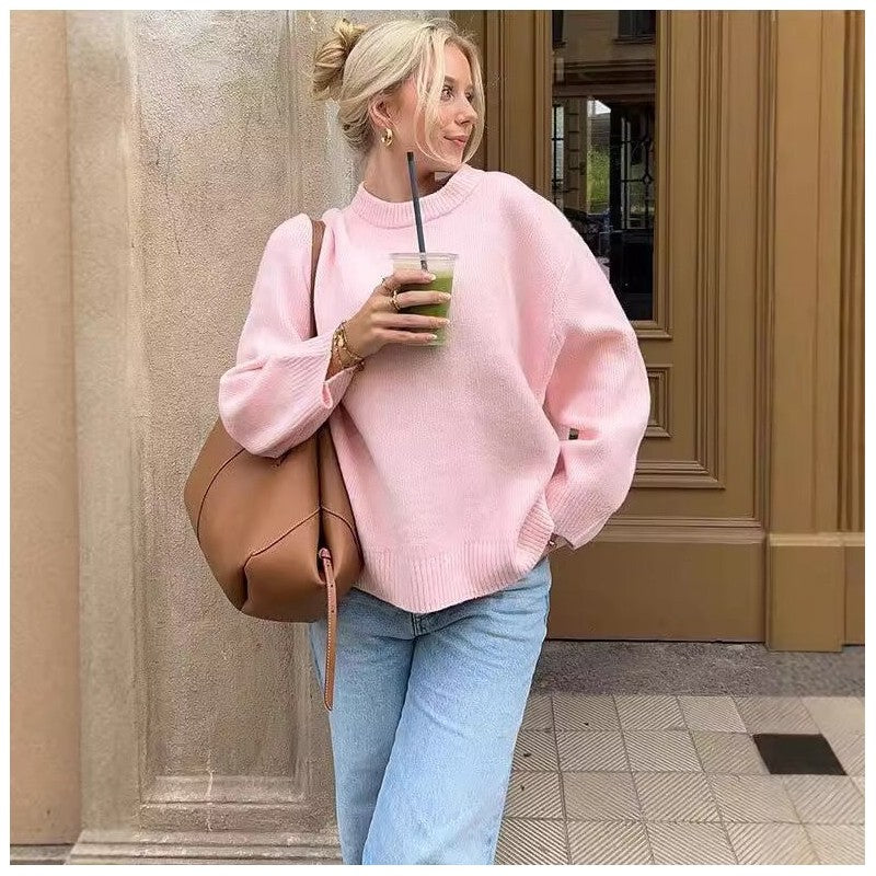 Long Sleeve Round Neck Solid Color Sweater