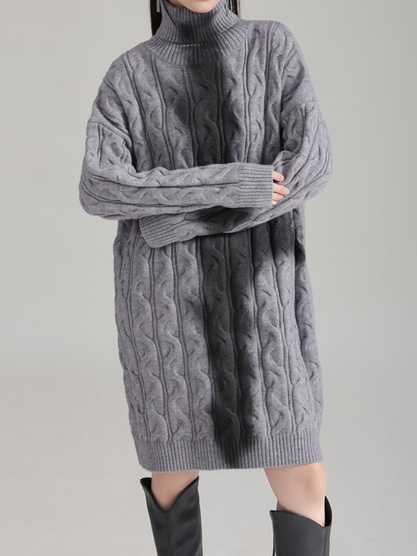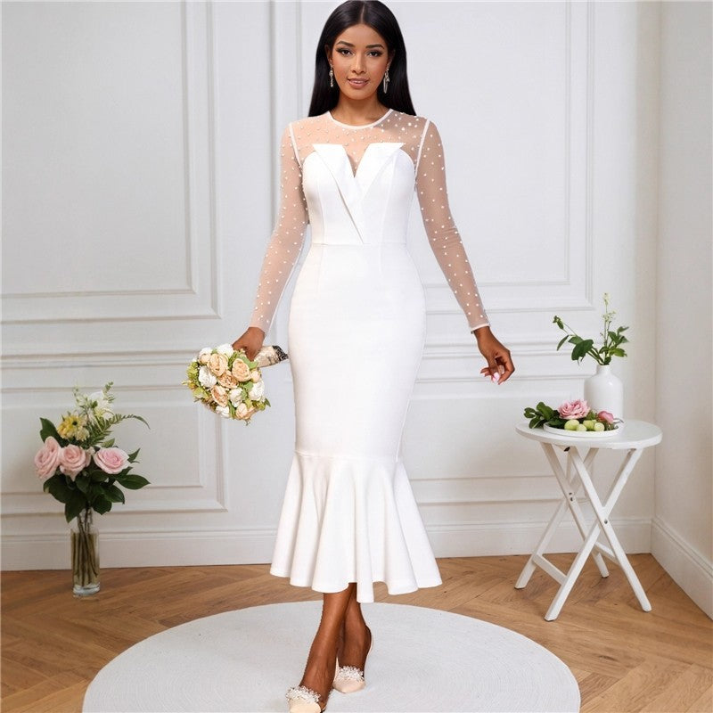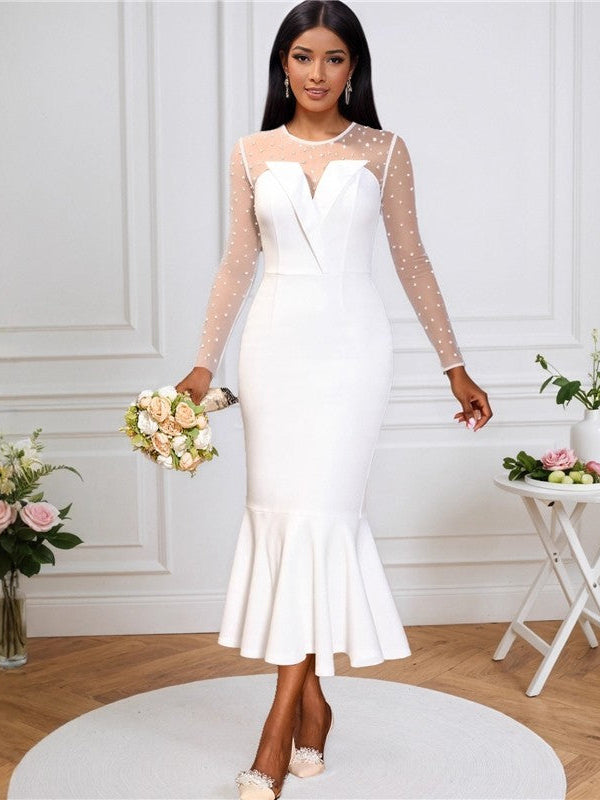 High-Low Long Sleeves Round-Neck Maxi Dresses