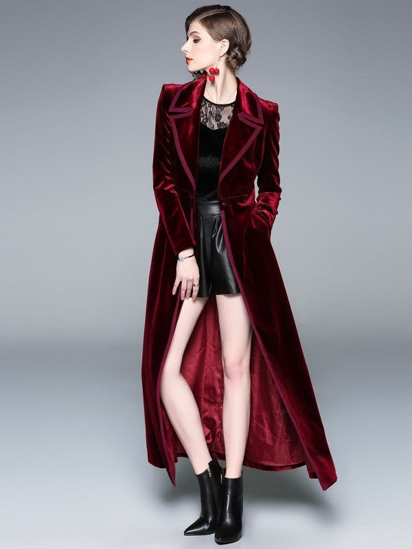 Long Velvet Coat In Solid Color