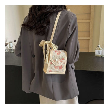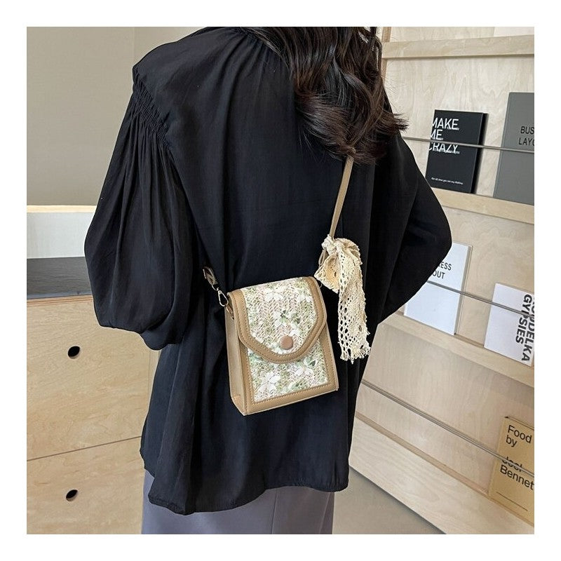 Lace Scarf Straw Crossbody Bag